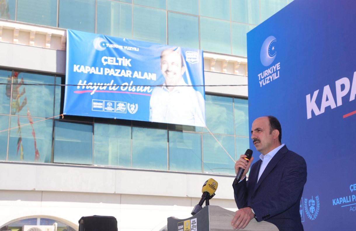 Hz. Mevlana’nın, ‘Aşkı her ne formda açıklasam da anlatsam da onu tanımda lisan, dilsiz kalır’ kelamında tabir ettiği üzere kendilerinin de Çeltik’lilere olan muhabbetlerini anlatmaya lisanların yetmediğini kaydeden Lider Altay, “Bu sevginin en hoş yansımaları kazandırdığımız eserler, yaptığımız hizmetlerdir. Bugün de bunun en hoş örneklerinden birine daima birlikte şahitlik ediyoruz. İlçemize büyük paha katacak, Selçuk Kapalı Pazar Alanı’nı hizmete açıyoruz” tabirlerini kullandı.
