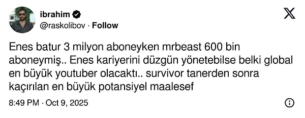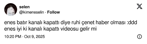Enes Batur bu defa 16 milyon aboneli YouTube hesabını sildi. Bu derece büyük hamleleri giderek daha telaş verici bir hal aldığını düşündürtmeye başladı. Bilhassa X’te kullanıcılar peşi sıra yorum yağdırdı.