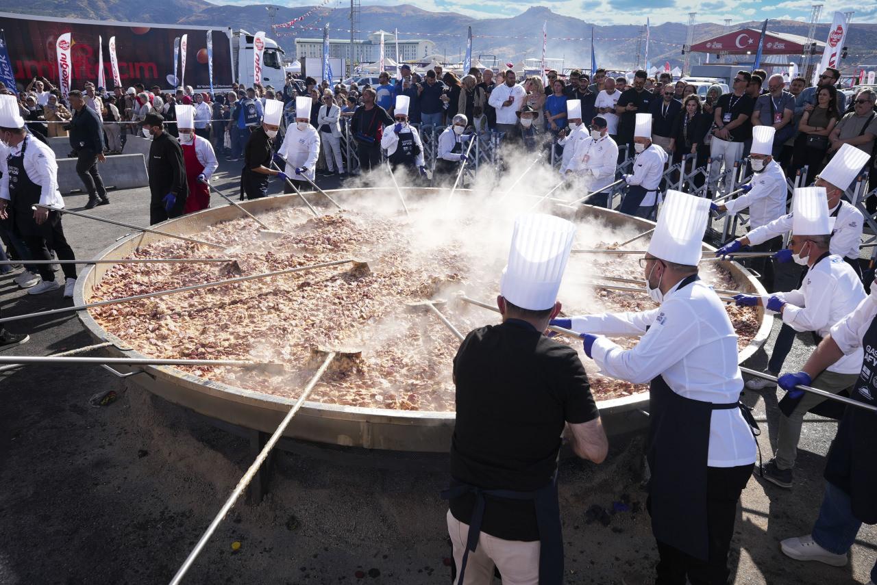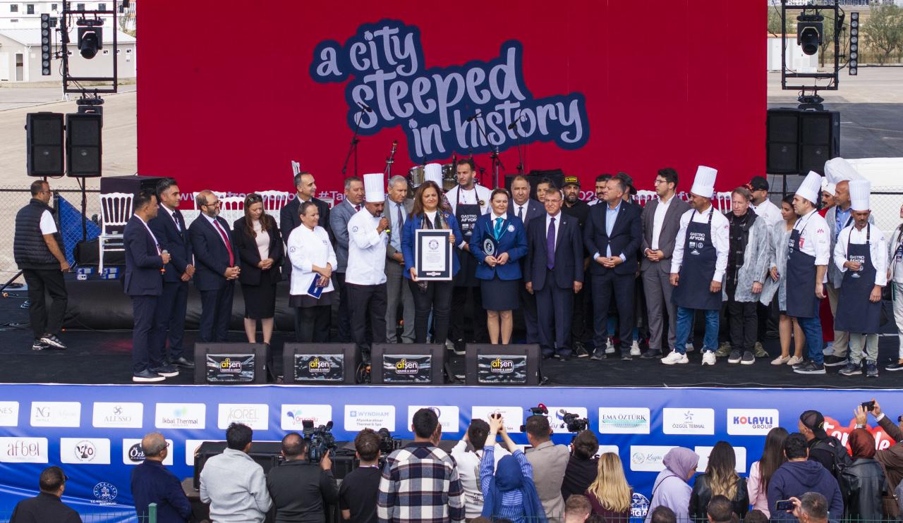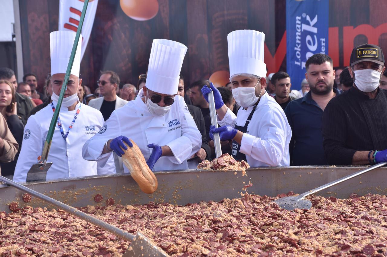 Konuşmaların akabinde vilayet protokolü, Guinness Dünya Rekorları kitabına girmesi için şenliğe katılan 30 şefin ve sponsorların takviyesiyle 25 metrekarelik dev tavada 1 ton sucuk, 15 bin gezen tavuk yumurtası, sıvı yağ ve tuzun kullanıldığı sucuklu yumurtanın startını verdi.