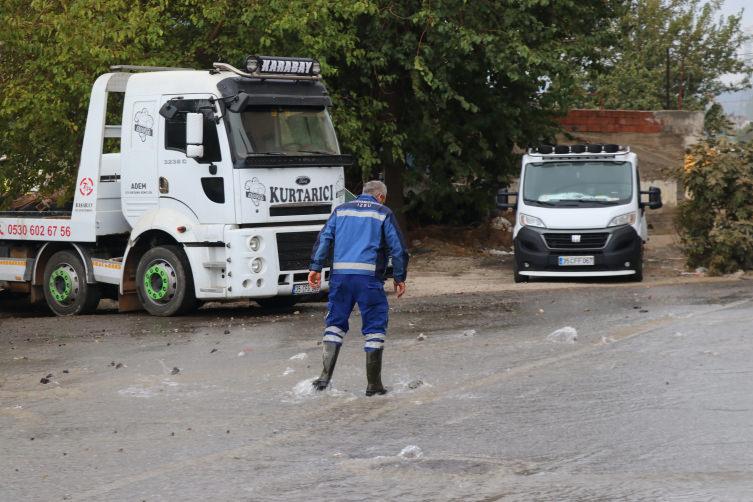 Mahallelinin ihbarı üzerine bölgeye gelen İzmir Su ve Kanalizasyon İdaresi Genel Müdürlüğü takımları tamir çalışmaları başlattı.