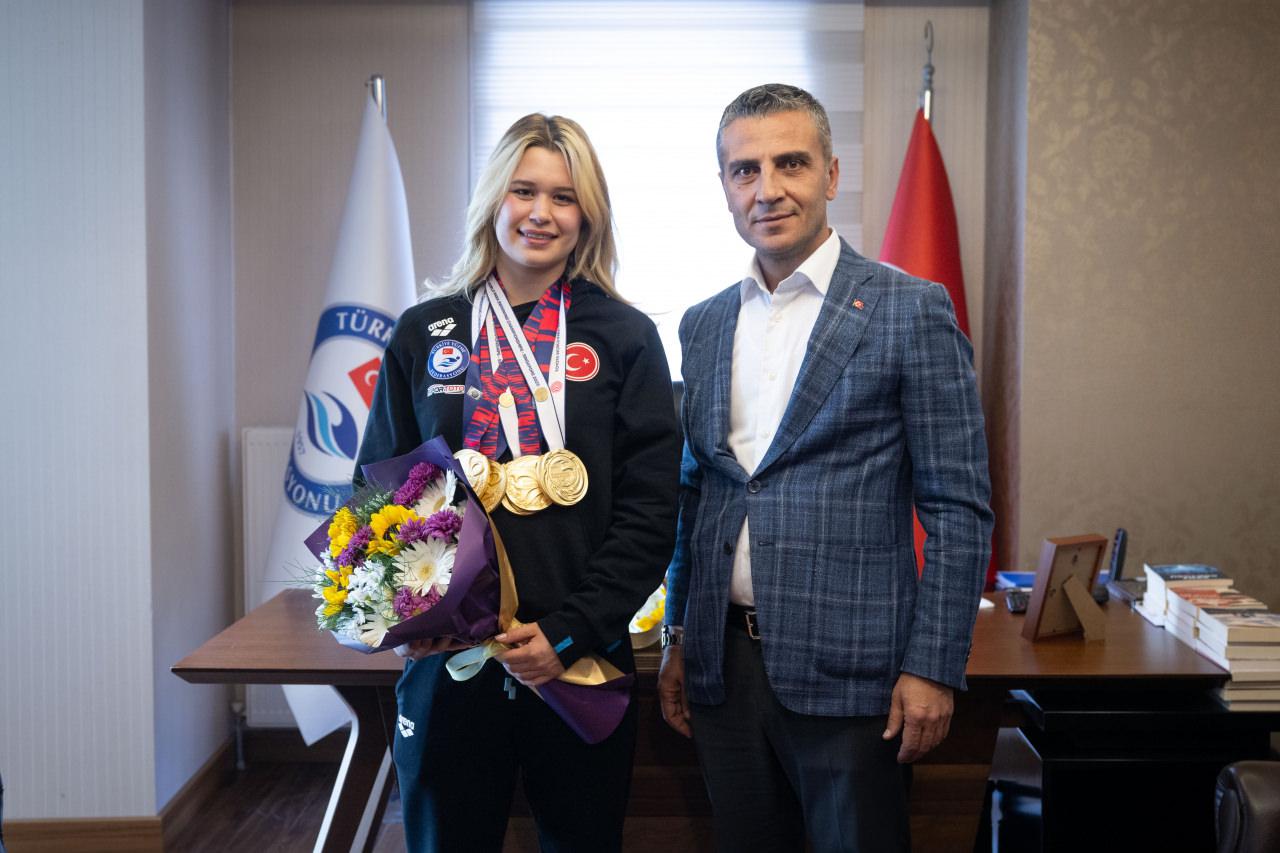 Defne Kurt, “Benim söylemek istediğim bu son iki sene içinde sahiden hani akıl alamayacak kadar sıkıntı bir savaş, güç bir süreç geçirdiler ve şunu söylemek isterim. Ateşkesin olmasını sağlayan Cumhurbaşkanımıza çok teşekkür ediyorum. Altın madalyamı da Gazze’deki çocuklara armağan ediyorum.” sözlerini kullandı.