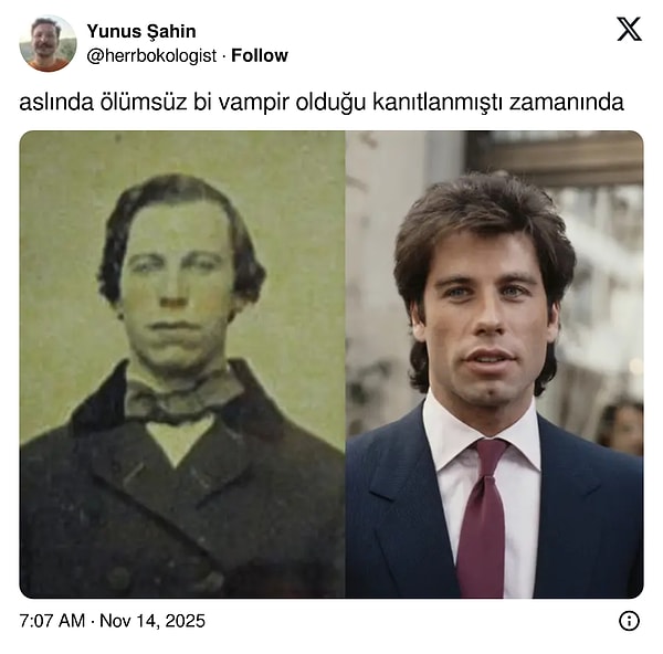 71 yaşındaki John Travolta’nın son hali, tam manasıyla “zamana meydan okuyor” dedirtecek cinsten. Efsane aktörün X’te paylaşılan imajları, kısa müddette gündeme oturdu. Bir müddettir kel imajıyla dikkat çeken ismin bakımlı görünümü ve gür saçları dikkat çekti. Ünlü oyuncunun 70’ler ve 90’lardaki karizmasını hiç kaybetmemiş üzere görünmesi X kullanıcılarının da dikkat çekti.