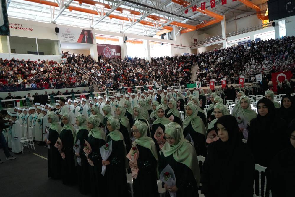 Erzincan Vilayet Müftülüğü bünyesinde bulunan Kur’an kurslarında hafızlığını tamamlayan öğrenciler için Merkez Spor Salonunda Hafızlık İcazet Merasimi düzenlendi.