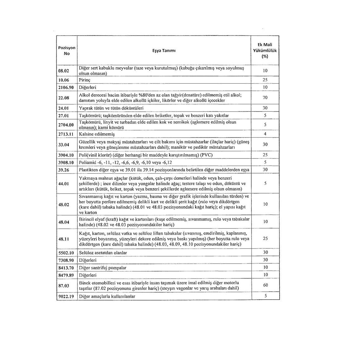 Cumhurbaşkanı Recep Tayyip Erdoğan’ın imzası ile yayımlanan karar ile birlikte, 2018 yılında Bakanlar Kurulu kararı ile yürürlüğe konulan ABD menşeli kimi eserlerin ithalatında ek mali yükümlülük uygulanmasına dair karar, yürürlükten kaldırıldı. Kararın, 1567 sayılı Kanunun 1’inci, 474 sayılı Kanunun 2’nci, 3283 sayılı Kanunun 2’nci, 4458 sayılı Kanunun 16’ncı, 22’nci ve 55’inci hususları ile 2976 sayılı Kanun ve 4067 sayılı Kanun kararları yeterince verildiği belirtildi.