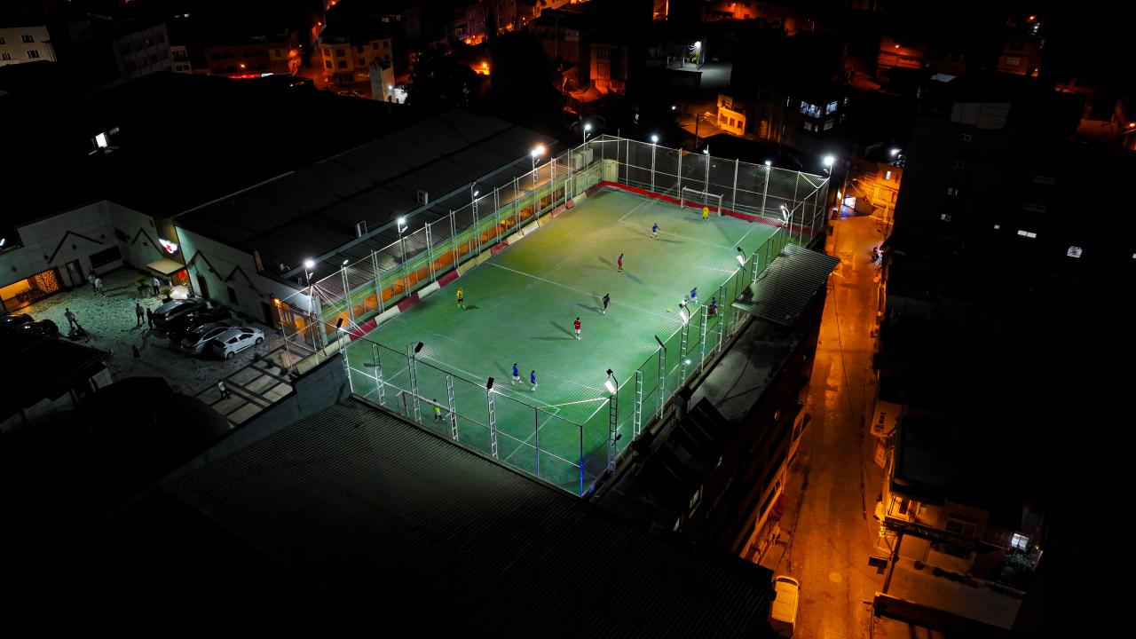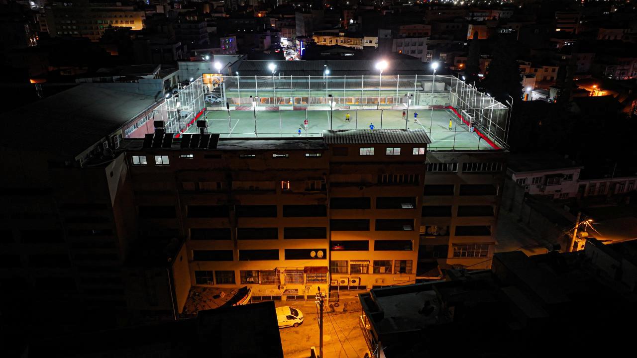 Binanın alt katlarındaki otoparktan araçla ulaşım imkanı bulunan halı saha, yıllardır görüntülü ve serin havada maç yapmak isteyenlerin adresi oluyor.