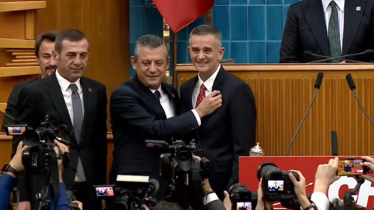 CHP’nin bugünkü küme toplantısı öncesi Dikbayır’a rozetini CHP Genel Başkanı Özgür Özel taktı.