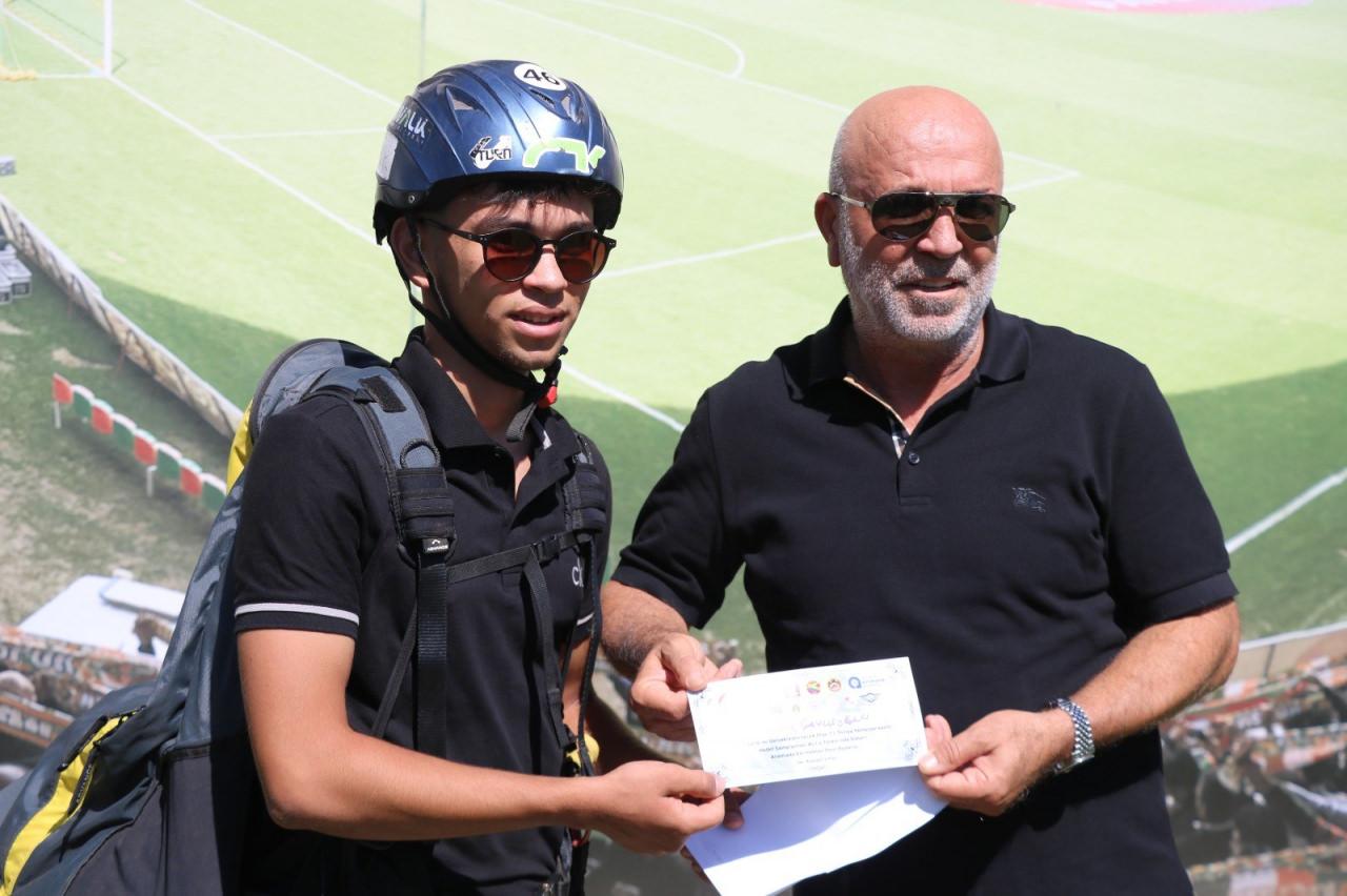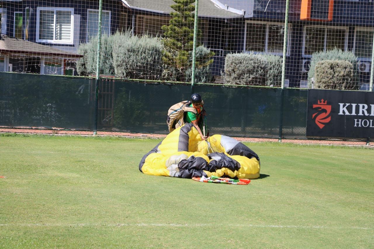 Muğla’nın Fethiye ilçesinde düzenlenen AWQ Dünya Yamaç Paraşütü Akrobasi Şampiyonası’nda dünya üçüncüsü olan 22 yaşındaki Harun Karateke Alanyaspor Başkanı Hasan Çavuşoğlu’na jest yaptı.