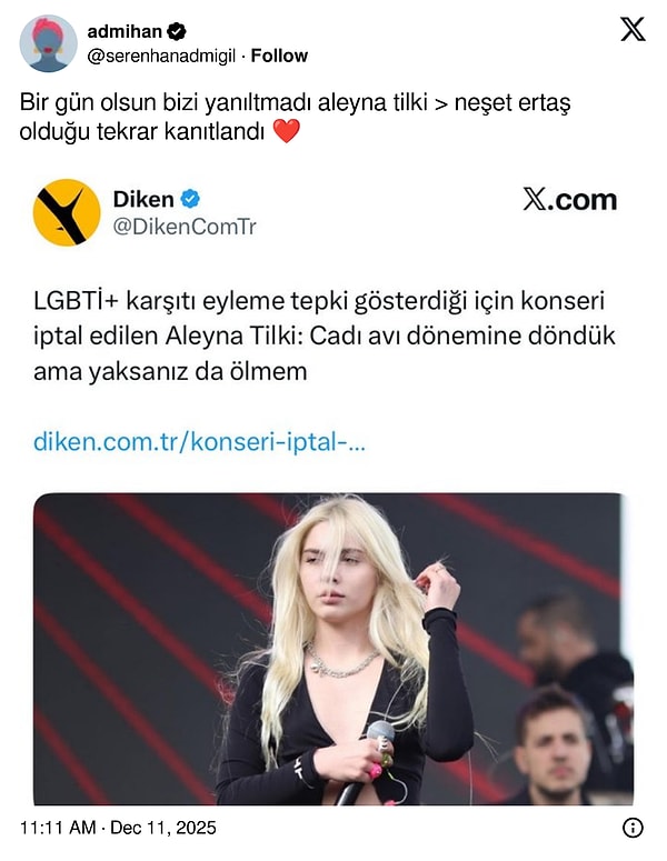 Röportajında “Artık sarışın bir kız olmak istemedim” diyerek değişiminin arkaplanını açıklayan Aleyna Tilki’nin o anları X’te gündem oldu.