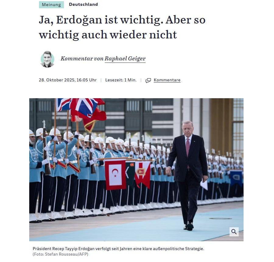 Bild gazetesi, Merz’in AB ve ABD dışında birinci ziyaretinin Türkiye’ye olmasını “bilinçli bir tercih” olarak sundu ve Erdoğan’ın bölgesel gücünün Almanya açısından sağlayacağı yararlardan bahsetti.