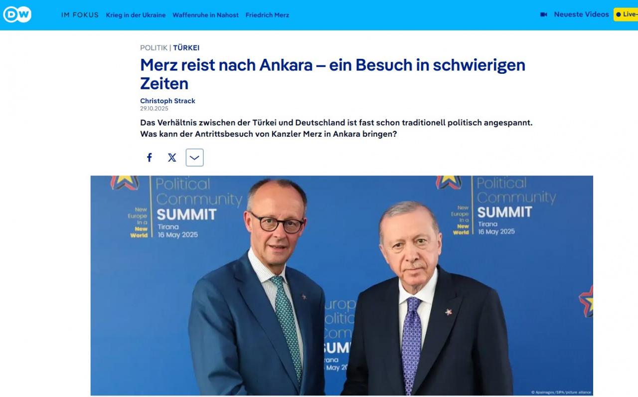 Deutsche Well (DW) ise, iki ülkenin klasikleşen gergin alakaları olduğunu vurguladı. Evvelki başbakanların Türkiye ziyaretleri ve münasebetleri anlatıldı ve hepsinin farklı nedenlerle Türkiye’ye bağımlı olduğu fikri öne çıkarıldı.