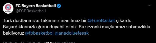Karşılaşmanın akabinde Almanya’nın dev kulübü Bayern Münih, EuroLeague’deki temsilcilerimiz Fenerbahçe ve Anadolu Efes’i etiketleyerek Türkiye’ye ileti gönderdi.