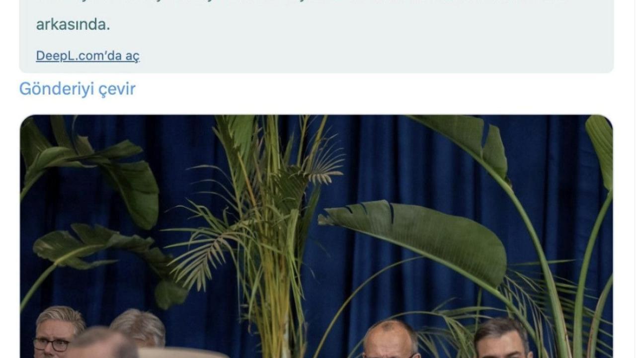 Reichelt, paylaşımında dünya önderlerinin oturduğu ana ilişkin bir kareye yer verdi.
