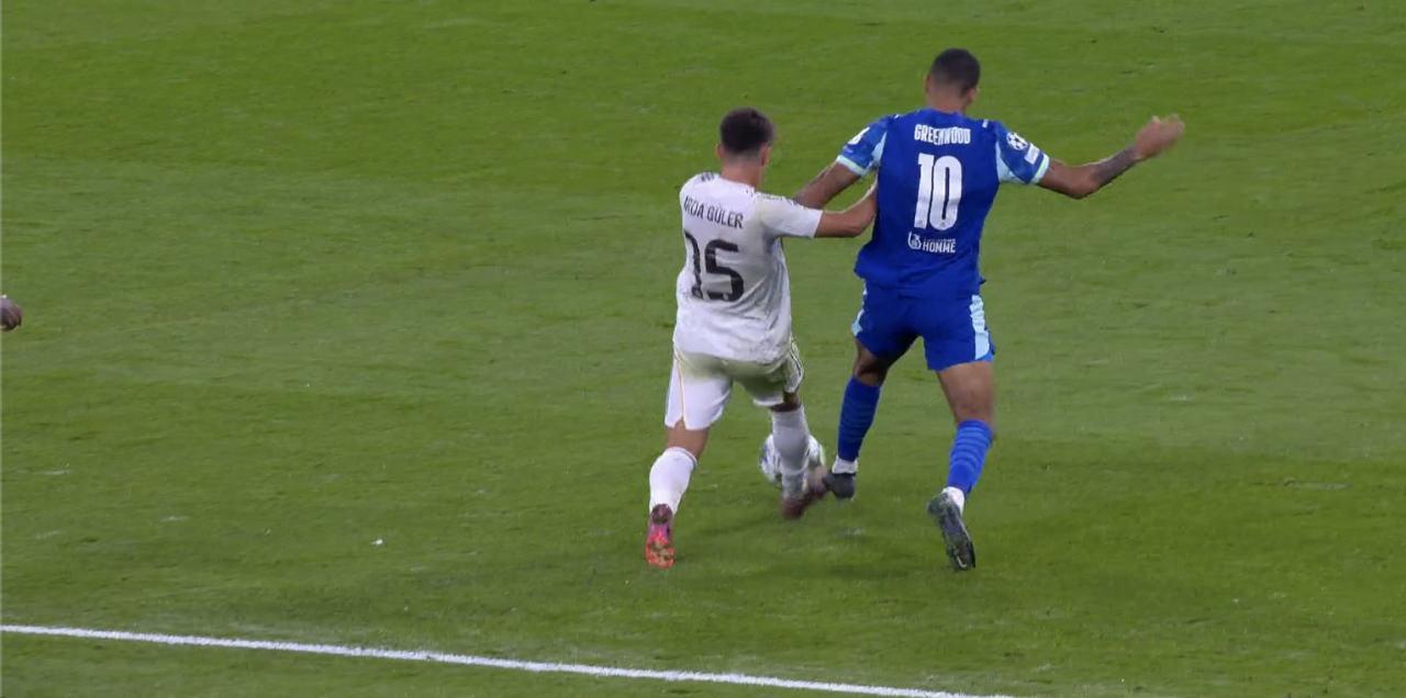Gayretin 22. dakikasında orta alandan topla çıkmak isteyen ulusal futbolcumuz Arda Güler’in yanlışında topu Greenwood kaptı.