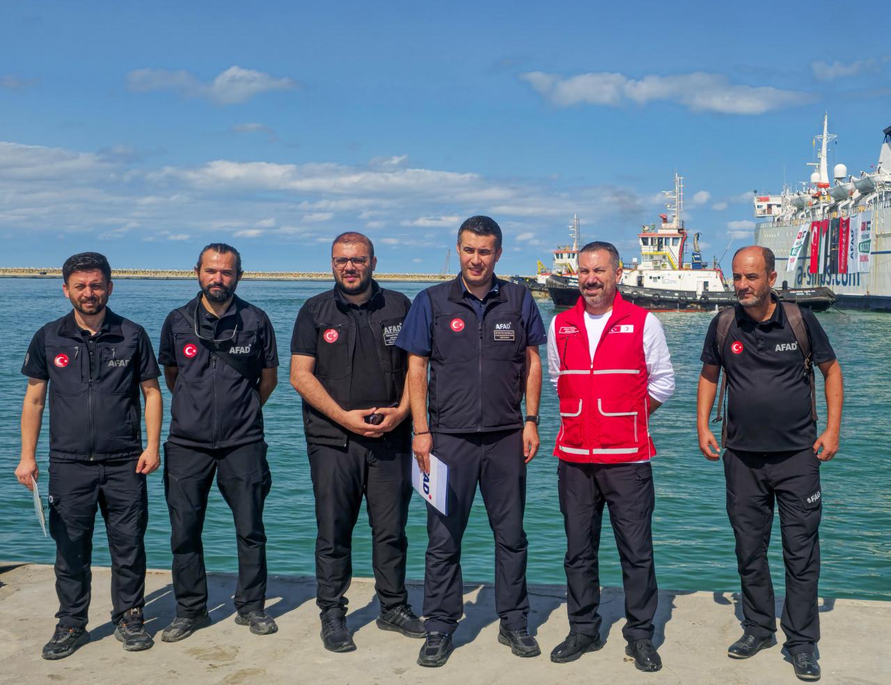 Afet ve Acil Durum İdaresi Başkanlığı (AFAD) uyumunda, 17 sivil toplum kuruluşunun dayanaklarıyla hazırlanan 900 tonluk insani yardım materyalini taşıyan gemi için 14 Ekim Salı günü Mersin Milletlerarası Limanı’nda uğurlama merasimi düzenlenmişti.
