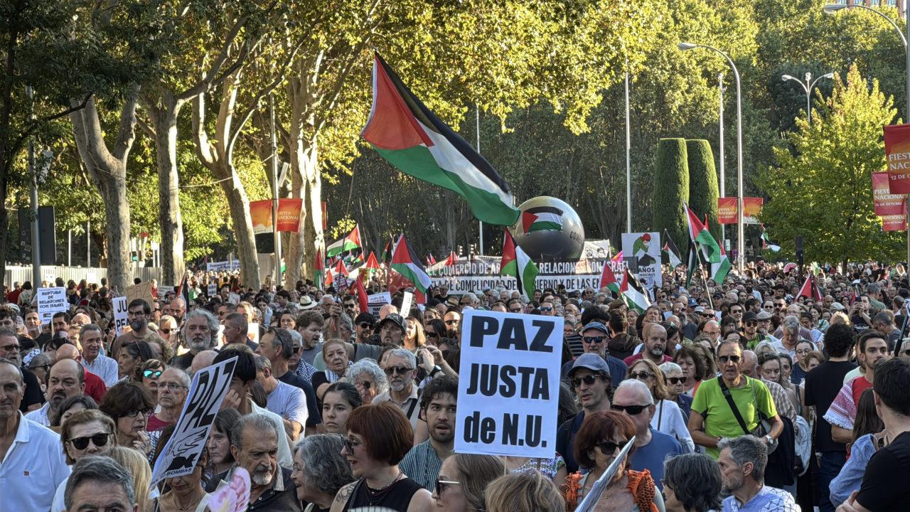 Madrid’de kent merkezinde Atocha istasyonundan Callao Meydanı’na yürüyen 400 binden fazla kişi, Filistin bayrakları sallayarak filoya takviye verdi.