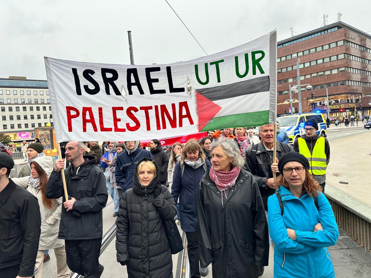 Çok sayıda sivil toplum kuruluşunun davetiyle Odenplan Meydanı’nda toplanan bireyler, İsrail ordusunun Global Sumud Filosu’na yönelik akınlarını kınayarak, İsveç hükümetinin İsrail’in tutukladığı İsveçli aktivistler için ses çıkarmamasını ikiyüzlülük olarak niteledi.