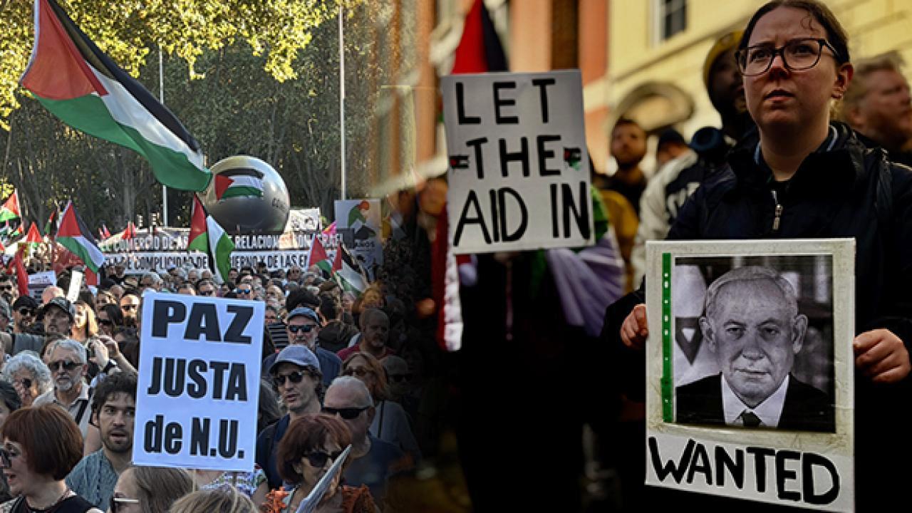 İsrail’in Global Sumud Filosu’na saldırısı sonrasında dünyanın dört bir yanında artan İsrail tersi şovlar, Avrupa’nın birçok kentinde devam ediyor.