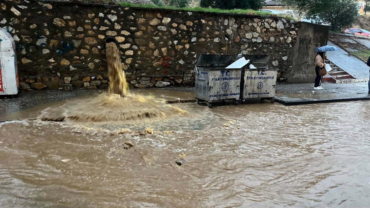 Efeler ilçesinde tesirini artıran sağanakta çok sayıda araç yolda kaldı, mesken ve iş yerlerini su bastı. Gruplar tıkanan mazgalları açmak ve su tahliyesi yapmak için çalışma başlattı.