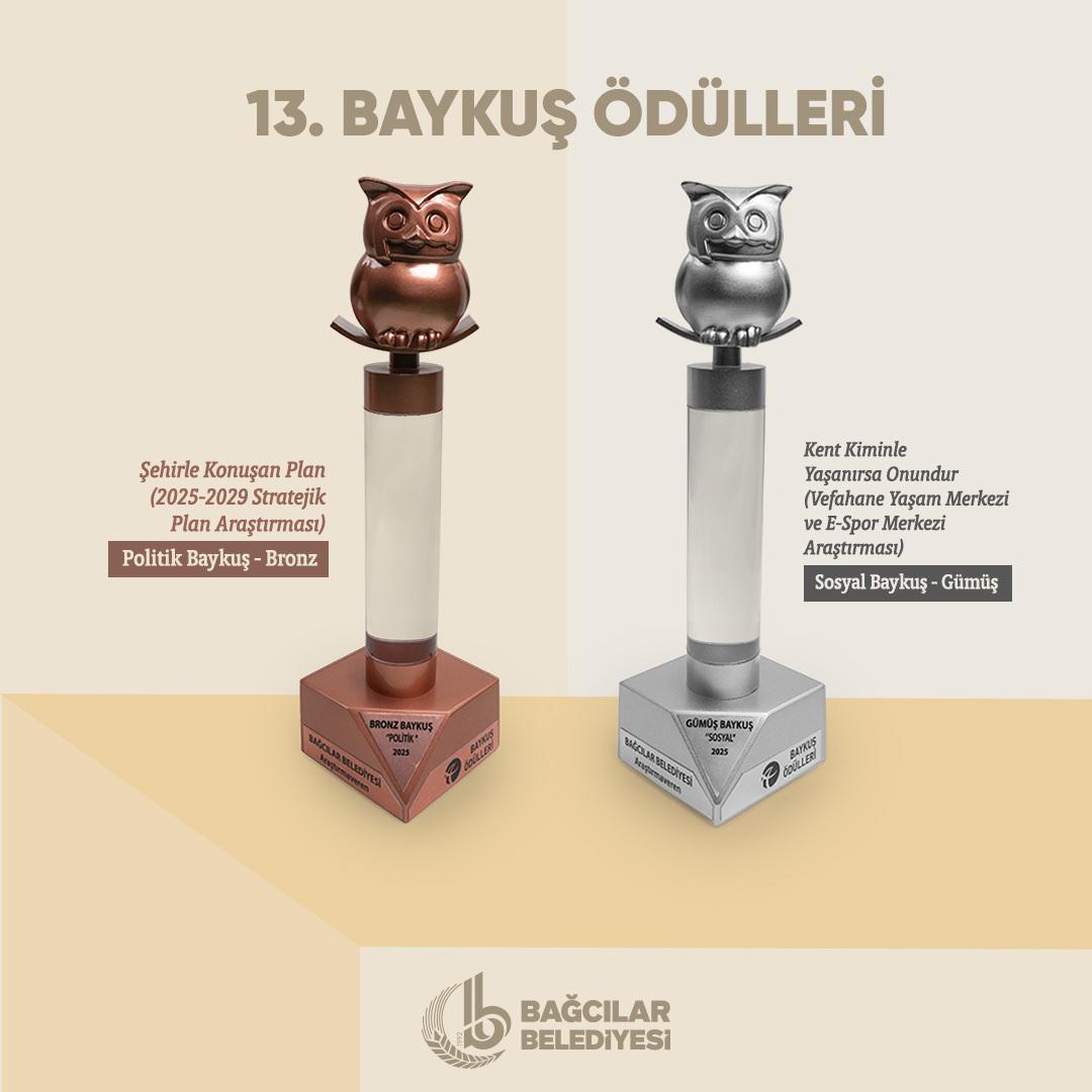 Türkiye Araştırmacılar Derneği (TÜAD) tarafından “Pazarlama ve Kamuoyu Araştırmaları” alanında düzenlenen 13. Baykuş Ödülleri’nde başarılı projeler ödüllendirildi. “Pazarlama ve Kamuoyu Araştırmaları” alanında düzenlenen tertipte, Bağcılar Belediyesi “Kent Kiminle Yaşanırsa Onundur – Vefahane Ömür Merkezi ve E-Spor Merkezi Araştırmaları” projesiyle “Sosyal Baykuş” kategorisinde Gümüş Baykuş Mükafatı aldı.