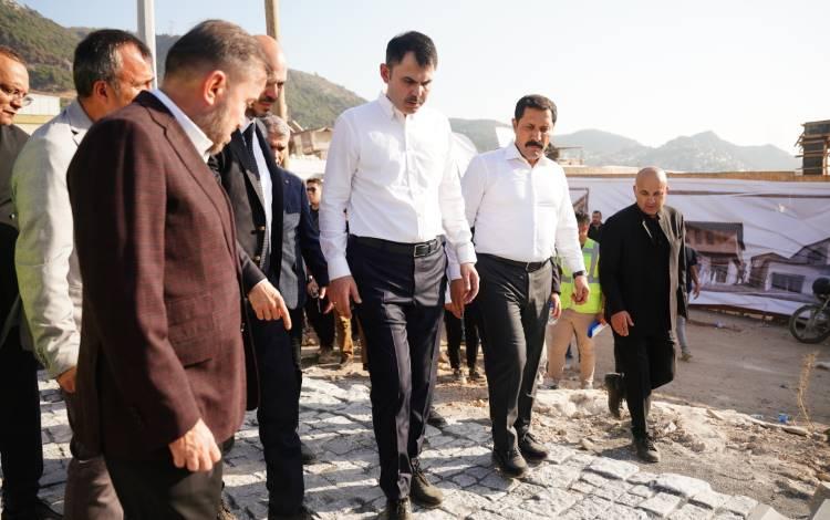 • Bakan Kurum, asrın felaketinde ağır yıkıma uğrayan Hatay’da devam eden inşa çalışmalarını yerinde inceledi.