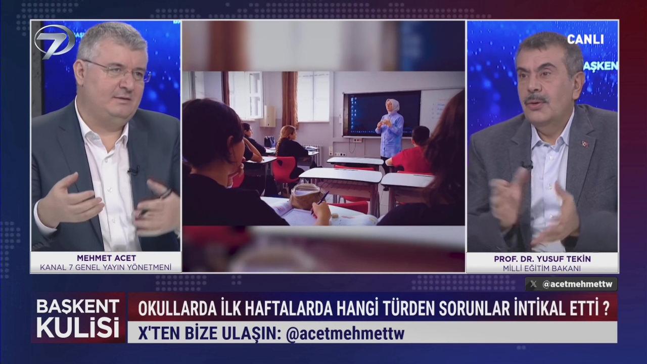 SON DAKİKA HABERİ: Kanal 7 Genel Yayın Yönetmeni Mehmet Acet’in sunumuyla ekrana gelen Başşehir Kulisi’nin bu haftaki konuğu Milli Eğitim Bakanı Yusuf Tekin oldu.