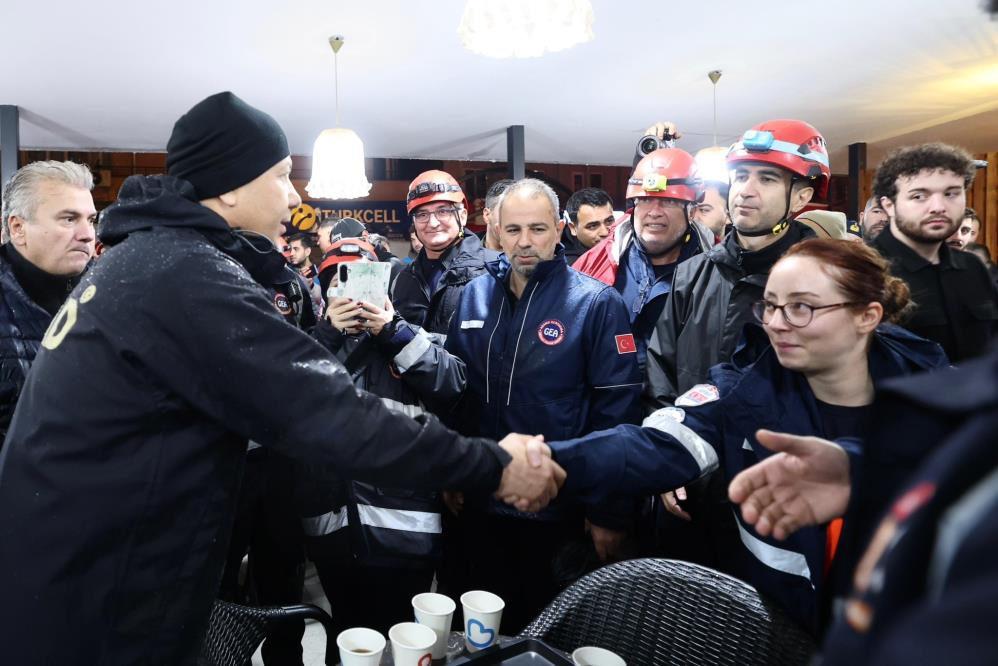 Yerlikaya, depremzedelerle ve sivil toplum kuruluşlarıyla bir ortaya gelerek yürütülen çalışmalar hakkında bilgi aldı.