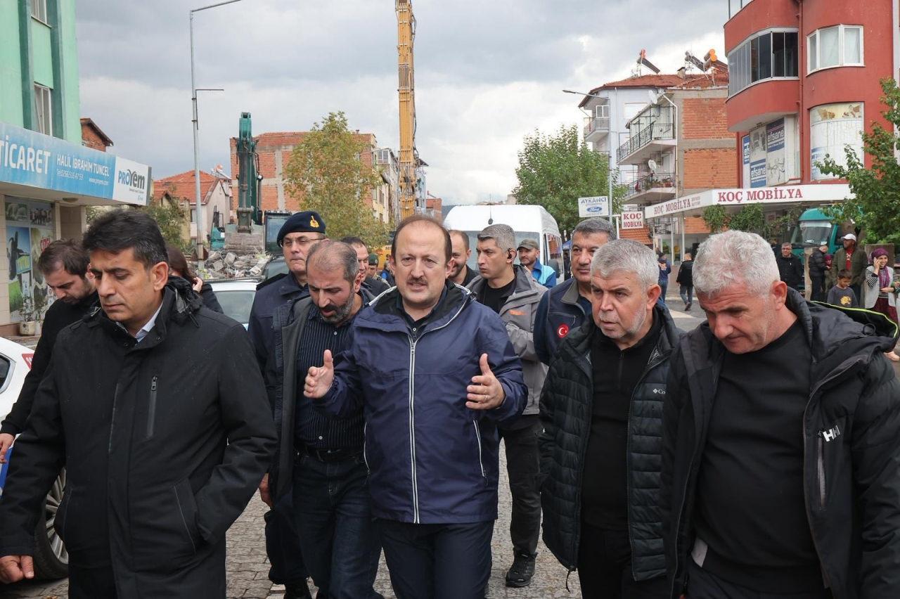 Depremin birinci saatlerinde Sındırgı’ya giden İçişleri Bakanı Sayın Ali Yerlikaya, AFAD Liderimiz Vali Ali Hamza Pehlivan, Balıkesir Valisi İsmail Ustaoğlu, Balıkesir Milletvekilleri, Sındırgı Kaymakamı, AFAD yöneticileri ve ilgili kurum temsilcileri ile birlikte uyum toplantısı gerçekleştirdi, gerisinden sarsıntıdan etkilenen mahalleleri ziyaret etti, ilçe merkezinde enkaz kaldırma çalışmalarının yapıldığı alanlarda incelemelerde bulundu, devam eden yapılan çalışmalar hakkında vatandaşlarımızı bilgilendirdi, yönelttikleri soruları yanıtladı, taleplerini dinledi, devletimizin tüm imkanları, kurum ve kuruluşları ile alanda, milletimizin yanında, hizmetinde olduğunu belirtti.
