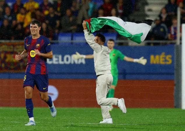 Öte yandan maçta bir taraftar, müsabakanın oynandığı sırada alana Filistin bayrağıyla girerek, İsrail’in Gazze’de yaptığı soykırımı protesto etti.