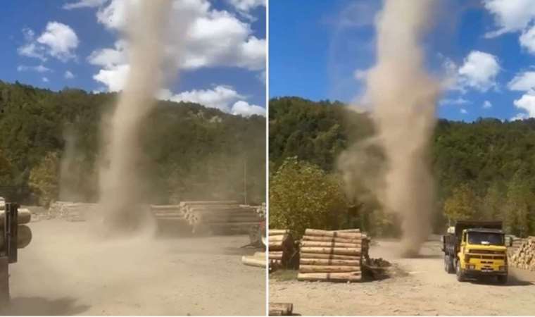 Bartın’ın Ulus ilçesinde bulunan orman deposundaki toprak alanda hortum çıktı. İşçilerin büyük panik yaşadığı hortum, cep telefonu ile görüntülendi.
