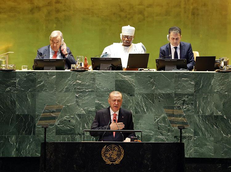 Cumhurbaşkanı Erdoğan, evvelki yıl düzenlenen BM 78. Genel Şurası’nda da BM’ye yönelik tenkitlerini sürdürdü. Terörle çaba, İslam düşmanlığı ve ırkçılık üzere bahislerde iletilerini paylaşan Erdoğan, Rusya-Ukrayna Savaşı, Filistin sıkıntısı, Doğu Akdeniz’deki gelişmelere de değindi.