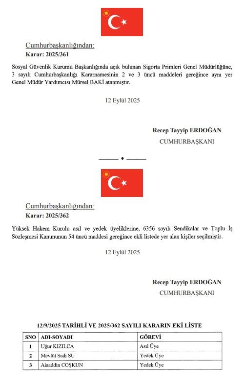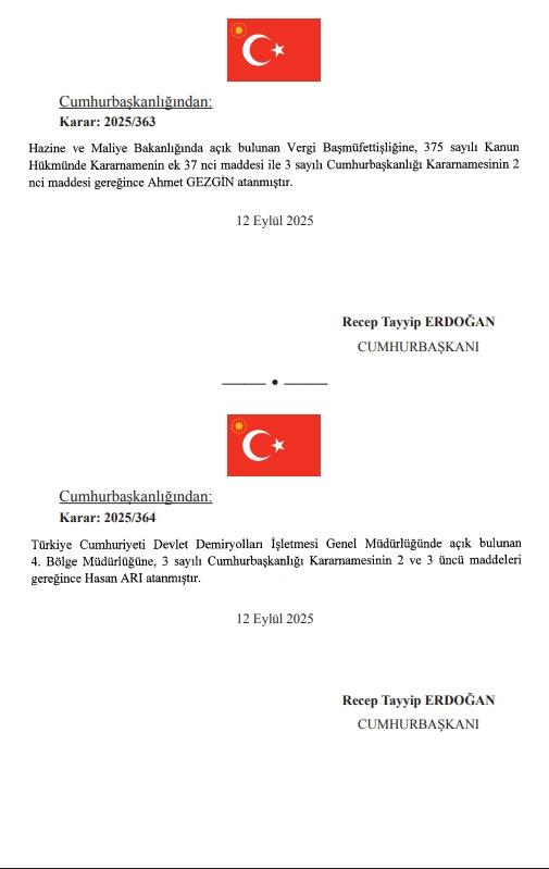 SON DAKİKA HABERİ: Cumhurbaşkanı Recep Tayyip Erdoğan’ın imzasıyla yayımlanan Resmi Gazete’de atama kararları ilan edildi.