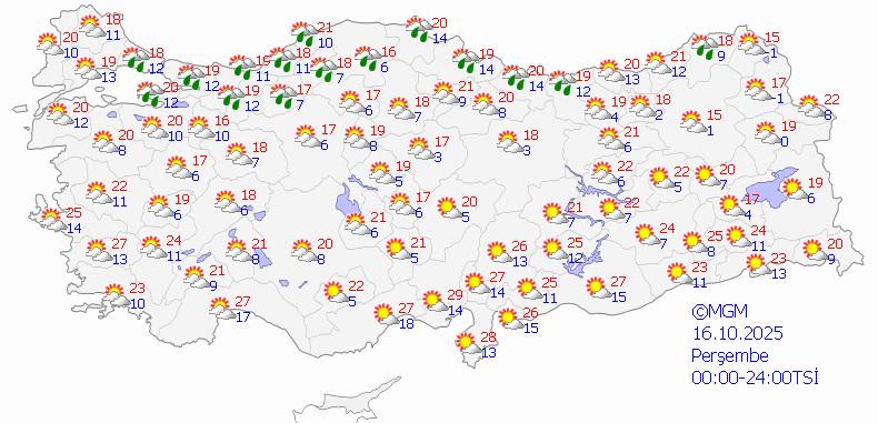 Parçalı, yer yer çok bulutlu, gece saatlerinden sonra aralıklı sağanak yağışlı