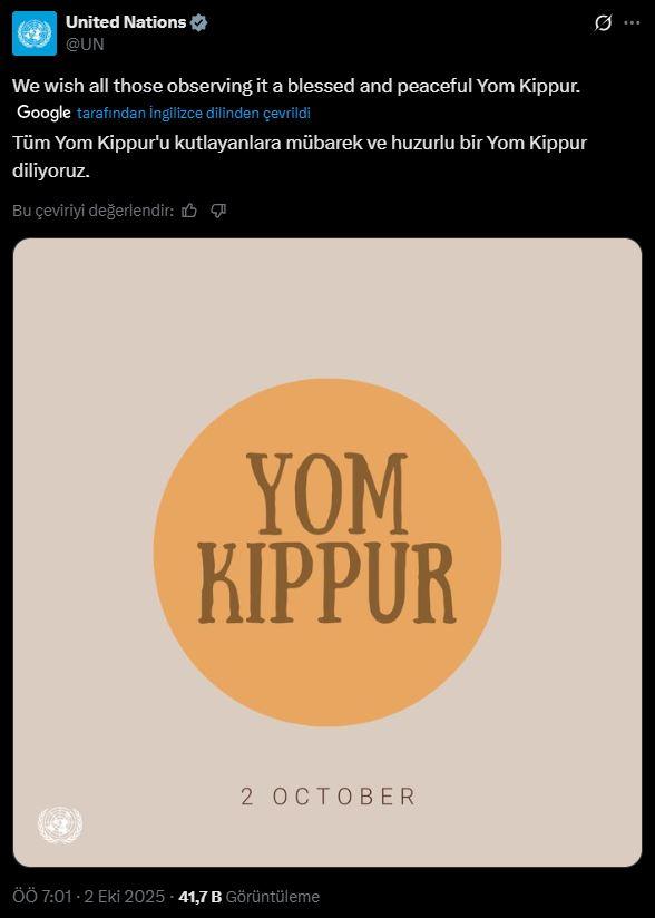 BM toplumsal medya X hesabından, “Tüm Yom Kippur’u kutlayanlara mübarek ve huzurlu bir Yom Kippur diliyoruz” mesajı sonrasında Filistin destekçilerinin reaksiyonuyla karşı karşıya kaldı.