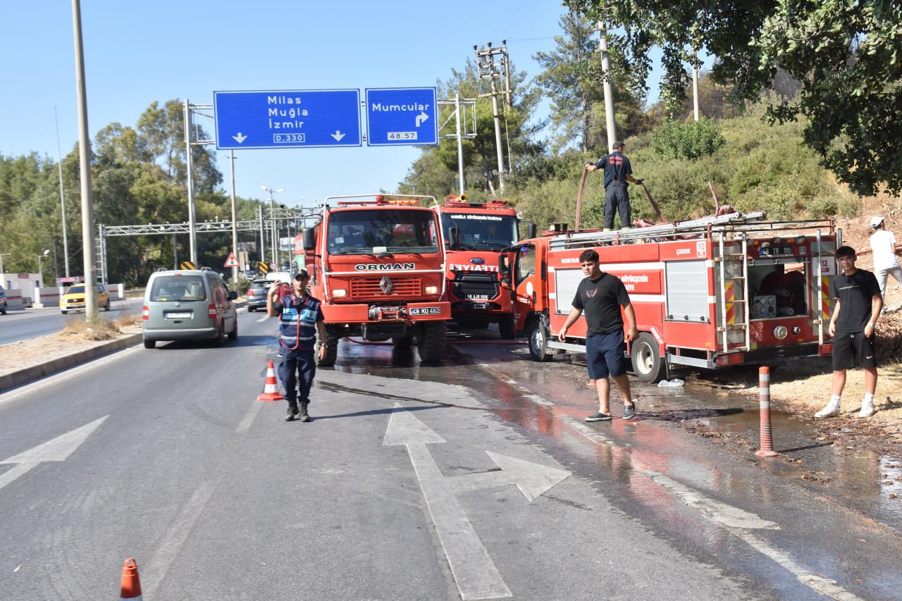 Milas-Bodrum kara yolu ise yangın söndürme araçları ile grupların kolay ulaşım sağlayabilmesi için süreksiz mühletle kapatıldı. Kuvvetli rüzgar nedeniyle yayılma eğilimi gösteren yangın, hava araçları ve kara gruplarının ağır müdahalesiyle denetim altına alındı.