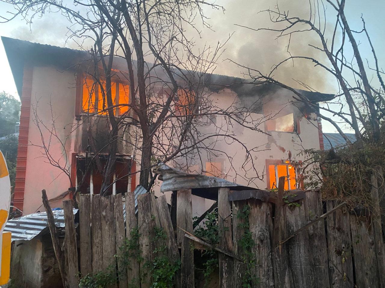 İlçeye bağlı Ekinören köyünde Necati (85) ve Ziyaver Karaman’ın (85) yaşadığı iki katlı konutta şimdi belirlenemeyen nedenle yangın çıktı.