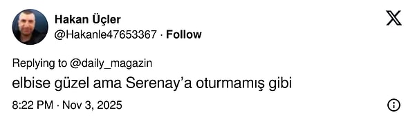 Asıl dikkat çeken ayrıntı ise Serenay Sarıkaya’nın Türk modacı Dilara Fındıkoğlu imzalı elbisesi oldu.