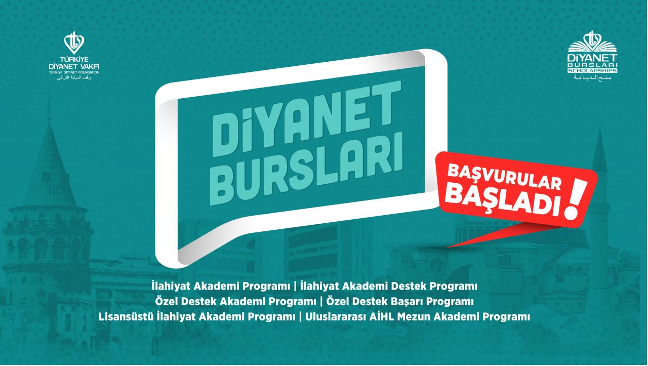 Türkiye Diyanet Vakfı, Diyanet İşleri Başkanlığı ve üniversiteler iş birliğiyle yürütülen burs programlarına müracaatlar, https://diyanetburslari.tdv.org adresi üzerinden alınacak.