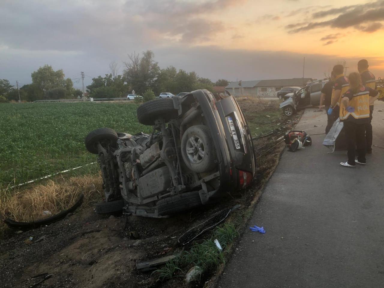Kaza saat 19.00 sıralarında Kozdere yolunda meydana geldi. Mehmet Kaya yönetimindeki 16 KY 355 plakalı araba, Yenişehir’den Kozdere yoluna çıkış yaparken, etraf yolunda karşı istikametten gelen O.Y. idaresindeki 16 ZC 804 plakalı kamyonetle çarpıştı. Çarpışmanın tesiriyle her iki araç da yol kenarındaki otluk alana savrulurken, takla atarak yan duran araba demir yığını haline dönüştü.