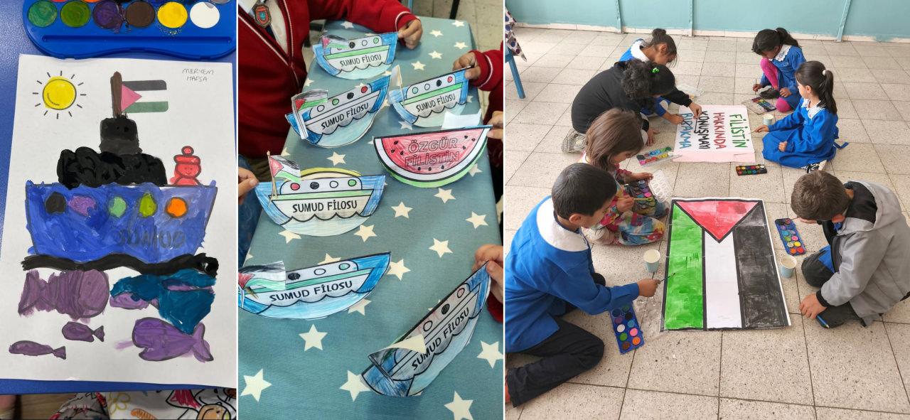 Anaokulu öğrencileri, Gazze ambargosunu delen Global Sumud Filosu’na yönelik fotoğraf çizimleri yaptı.