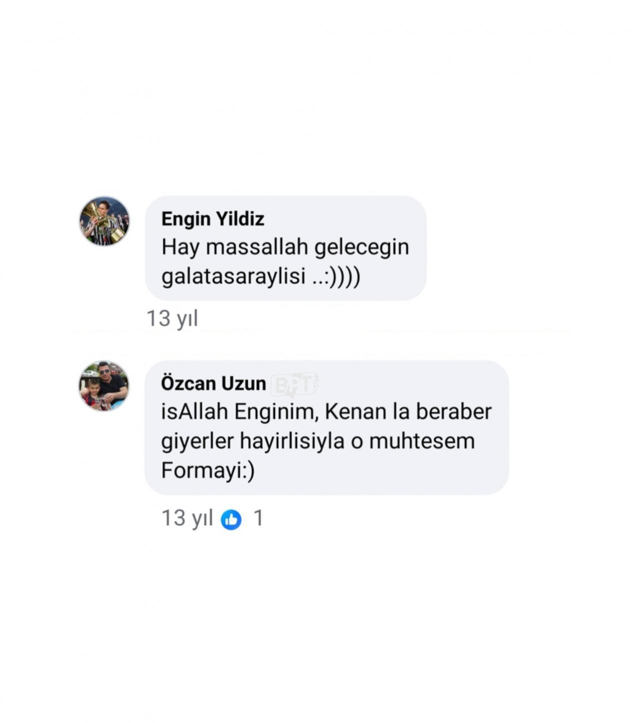 İkilinin 13 yıl evvelki bir fotoğrafında, Kenan Yıldız’ın babası Engin Yıldız, “Hey maşallah. Geleceğin Galatasaraylısı” yorumunu yaparken, Can Uzun’un babası Özcan Uzun’un “İnşallah Engin’im. Kenan’la birlikte giyerler o harika formayı” yorumu, yıllar sonra tekrar gündeme geldi.