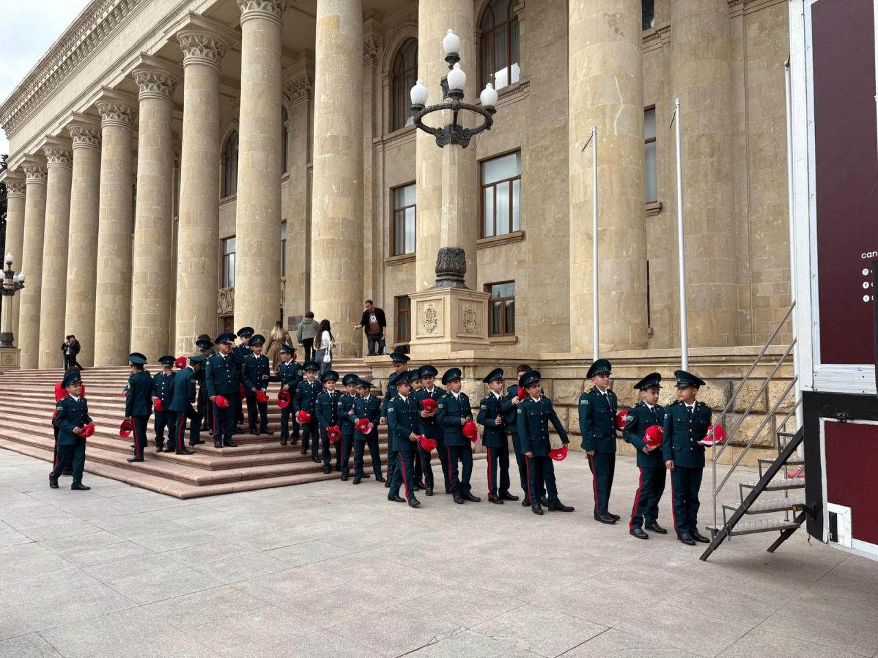 Vatan için canlarını feda eden şehitlerin ve hayatta bulunmayan devlet büyüklerinin hürmet duruşu ile anıldığı merasimde, İstiklal Marşı ve Azerbaycan Ulusal Marşı seslendirildi.