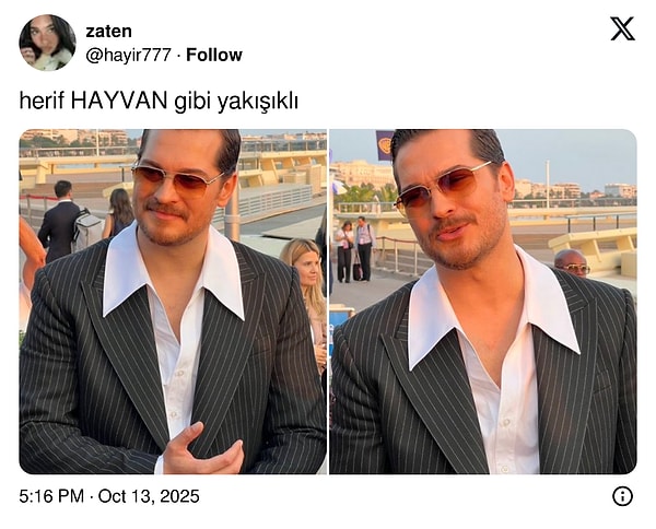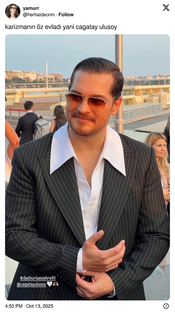 Başrol oyuncusu Çağatay Ulusoy, Eşref Tek karakterinin karizmasını kırmızı halıya taşıdı. Güzelliği ve duruşuyla tüm bakışları toplayan Ulusoy klasik usulü ve otomobiliyle dikkatleri üzerine çekti. Bugün Cannes sokaklarında görüntülenen isim karizmasıyla X kullanıcılarından büyük ilgi gördü.
