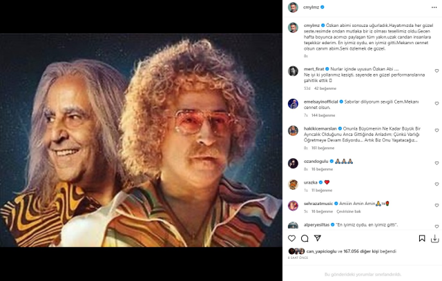 Özkan Uğur için Atatürk Kültür Merkezi’nde düzenlenen törende hüngür hüngür ağlayan ve acılı aileyi evinde de yalnız bırakmayan Cem Yılmaz, Instagram hesabından usta isimle bir fotoğrafını paylaşarak “Özkan abimi sonsuza uğurladık. Hayatımızda her güzel seste, resimde ondan mutlaka bir iz olması tesellimiz oldu. Gecen hafta boyunca acımızı paylaşan tüm yakın, uzak candan insanlara teşekkür ederim. En iyimiz oydu, en iyimiz gitti. Mekanın cennet olsun canım abim. Seni özlemek de güzel” ifadelerini kullandı.