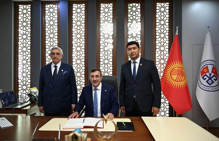 Türkiye Cumhuriyeti Cumhurbaşkanı Yardımcısı Cevdet Yılmaz, resmî temasları kapsamında bulunduğu Kırgızistan’ın başşehri Bişkek’te Kırgızistan-Türkiye Manas Üniversitesi’ni ziyaret etti.