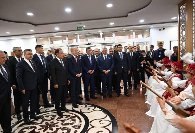 Cengiz Aytmatov Kampüsü’nde gerçekleşen ziyarette, Cumhurbaşkanı Yardımcısı Prof. Dr. Cevdet Yılmaz, KKTC Bayındırlık ve Ulaştırma Bakanı Prof. Dr. Erhan Arıklı ve Yükseköğretim Şurası Lideri Prof. Dr. Erol Özvar; KTMÜ Mütevelli Heyet Lideri Prof. Dr. İbrahim Çapak, Cumhurbaşkanlığı Strateji ve Bütçe Lideri İbrahim Şenel, Yükseköğretim Kurulu (YÖK) Lider Vekili Prof. Dr. Naci Gündoğan, Rektör Prof. Dr. Alpaslan Ceylan, Rektör Vekili Prof. Dr. Almaz İbrayev, Rektör Yardımcısı Prof. Dr. Kamalbek Karımşakov, Genel Sekreter Prof. Dr. İsmet Altıntaş, Türkiye Cumhuriyeti Bişkek Büyükelçiliği Eğitim Müşaviri Kürşat Dulkadir, akademisyenler ve öğrenciler tarafından resmî merasimle karşılandı.