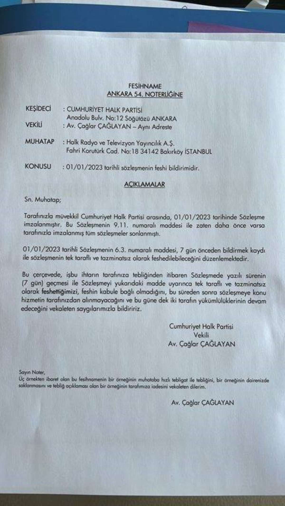 CHP, Halk TV’yle yapılan tüm anlaşmaları feshetti.