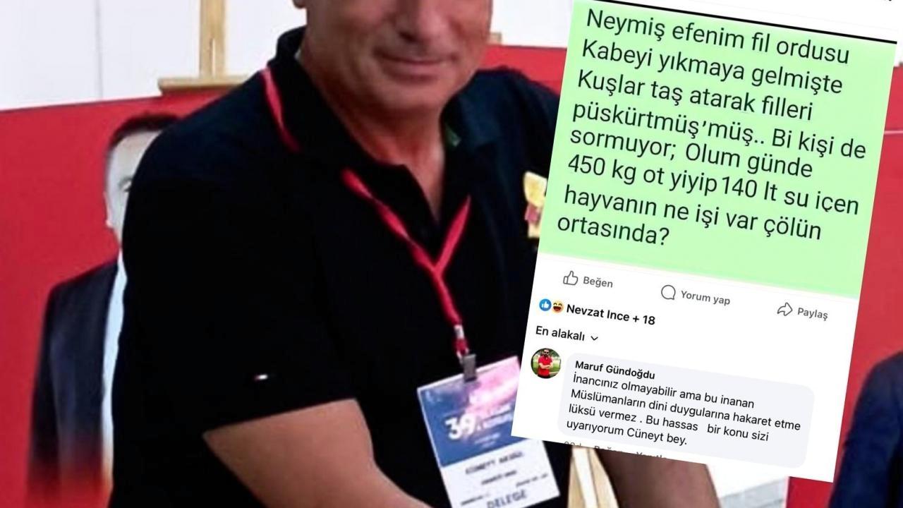 CHP Edremit İlçe Başkanlığı, Kadıköy Mahalle Sorumlusu Cüneyt Akgül’ün toplumsal medya hesabında yaptığı Fil Suresi’ne atıfta bulunan alaycı paylaşım sonrası, Akgül’ü vazifeden uzaklaştırdı.