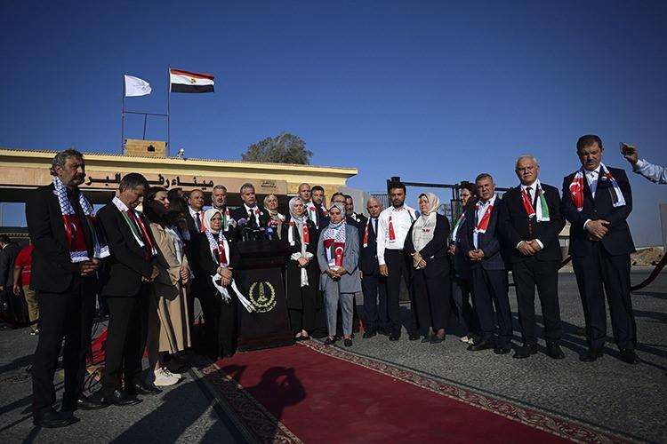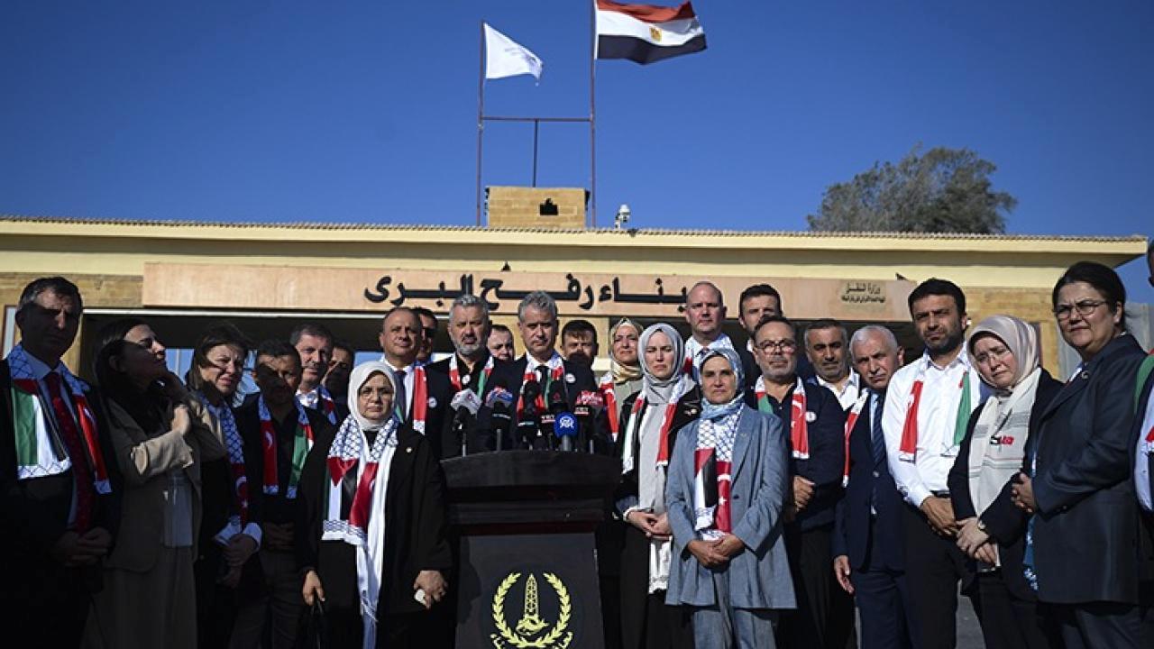 “Herkes sussa, herkes sırtını dönse bile Türkiye’nin bu zulme, bu soykırıma karşı sessiz ve reaksiyonsuz kalması düşünülemez. Gerçekten, Türkiye’deki tüm siyasi partiler, Türkiye Büyük Millet Meclisi, hükümetimiz, Cumhurbaşkanımız ve aziz milletimiz bu acımasız soykırımı durdurmaya yönelik mümkün olan her yol ve usulle güçlü bir gayret vermektedir. Bugün Refah Kapısı’na yaptığımız ziyaret de bu kapsamda, dünyanın ve İslam aleminin dikkatlerini Gazze’ye çekmeye yönelik bir ziyarettir. Gazze halkı yalnız değildir, Gazzeliler unutulmuş değildir. Bu kuşatmayı yarmak, Gazzelilere el uzatmak, yaraları sarmak, suçluları da cezalandırmak için her an teyakkuzdayız. Bu kararlılığımızın bir göstergesi olarak da bugün buradayız.