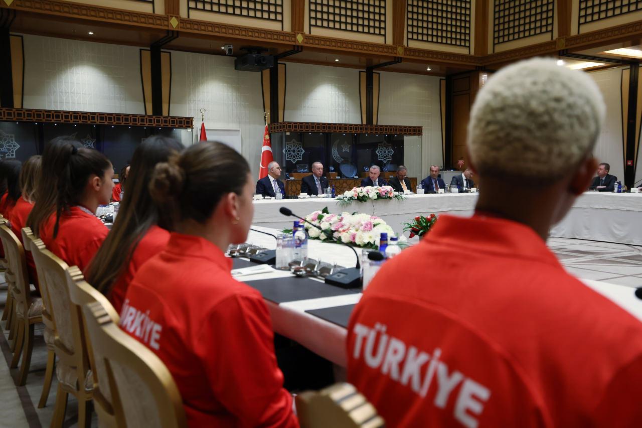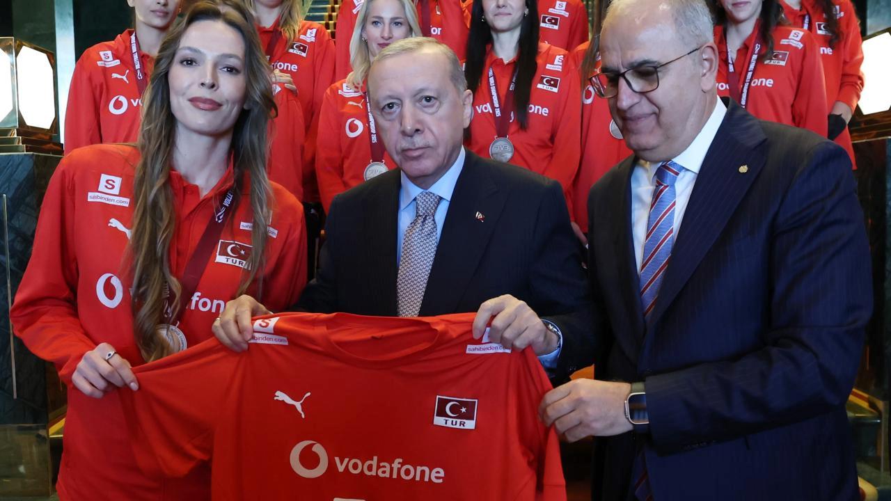 Cumhurbaşkanı Recep Tayyip Erdoğan, Tayland’ın başşehri Bangkok’ta düzenlenen 2025 FIVB Dünya Şampiyonası’nda gümüş madalya kazanan A Ulusal Bayan Voleybol Kadrosu’nu kabul etti.