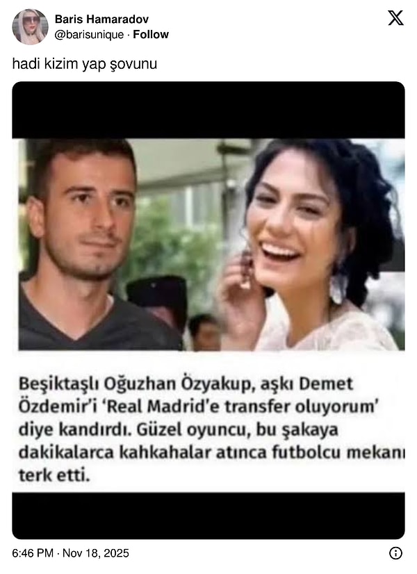 Demet Özdemir cephesinde aşk gündemi yeniden oldukça hareketli. Bir yanda masal üzere başlayıp kısa müddette biten Oğuzhan Koç evliliği, bir yanda yıllar evvel ismi anılan Beşiktaşlı Oğuzhan Özyakup iddiaları, artık de yeniden bir Beşiktaşlı futbolcu, Emirhan Topçu söylentisi X ahalisini ayağa kaldırdı.